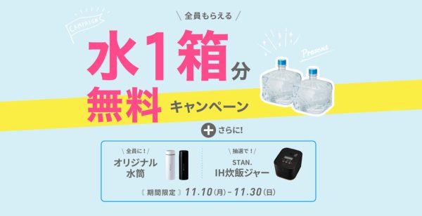 | 使用可能な水ボトル | FRECIOUS 999円(18.8L) ※1箱(4.7L入り×4パック)単位の注文 |